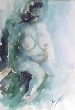 Blauer Akt Aquarell 50 x 40 cm